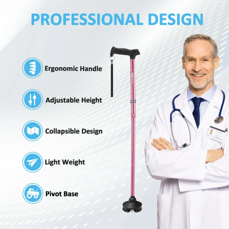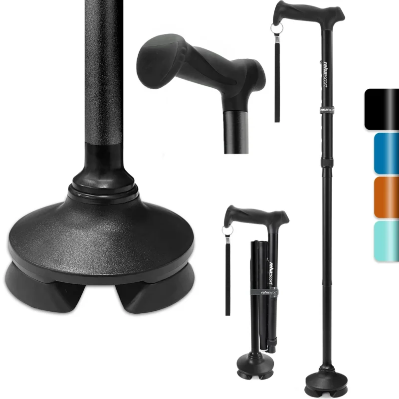 REHAND Walking Cane for Men & Women - Foldable, Adjustable, Lightweight, Self Standing Pivot Walking Cane, Soft Handle Grip, with Travel Bag, Walking Sticks for Seniors & Adults
