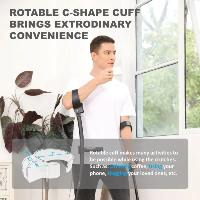 Rehand innovated ergonomic hand grip can reduce hand fatigue and palm pressure in long time use. With the all terrain base, users can have the maximized ground contact for safety and comfort. Up to 350 pound weight capacity and 8 level adjustable height makes Rehand cane suitable for almost all users.