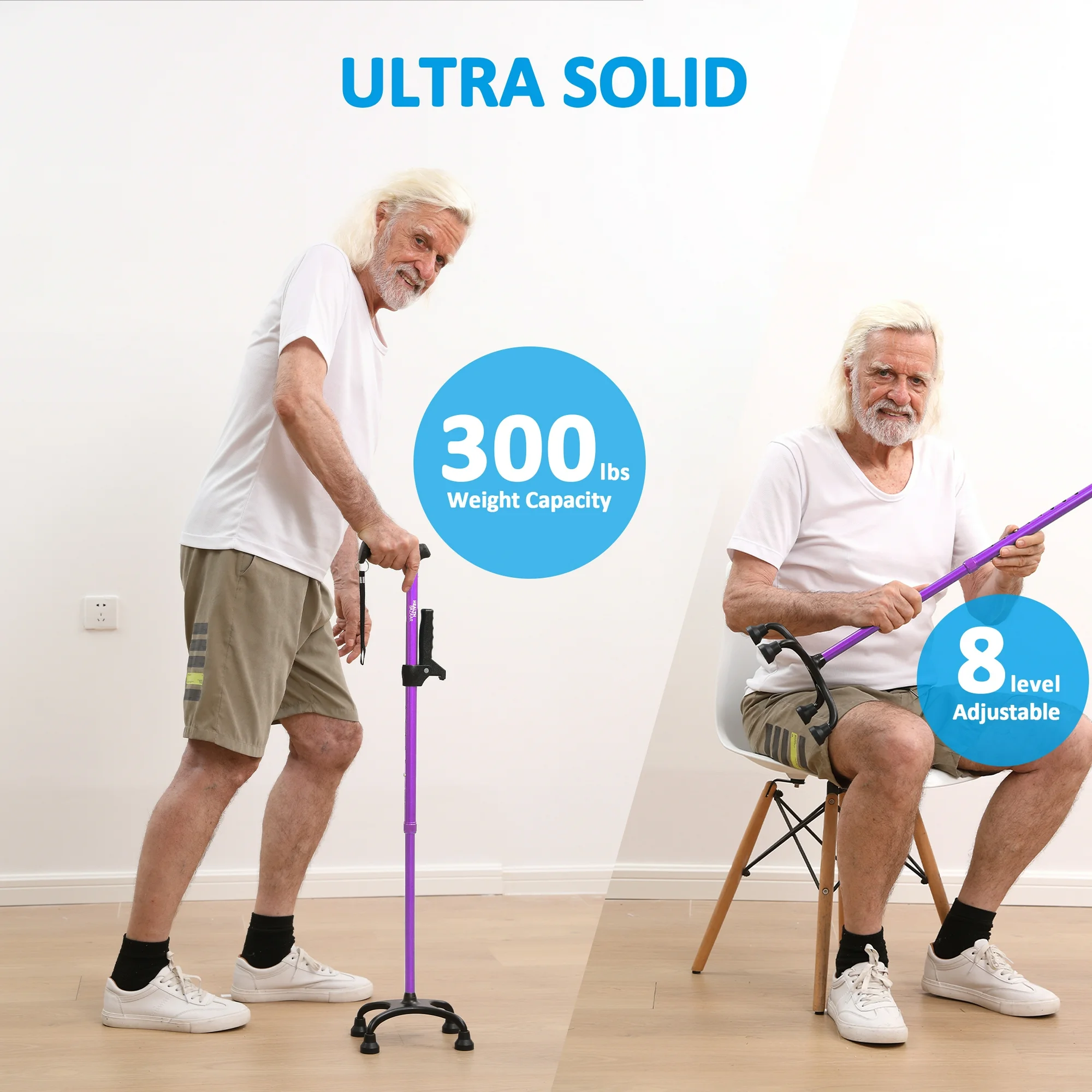 - 【Enhanced Stability with Molded Quad Base】The seamless molded base eliminates the instability of traditional welded designs, while larger rubber pads provide superior traction and safety on any surface.