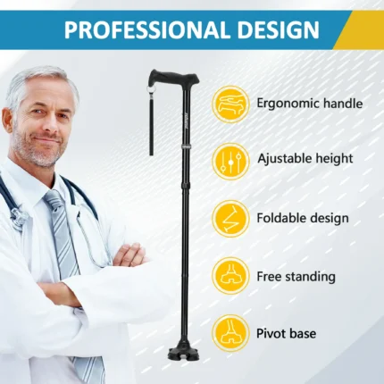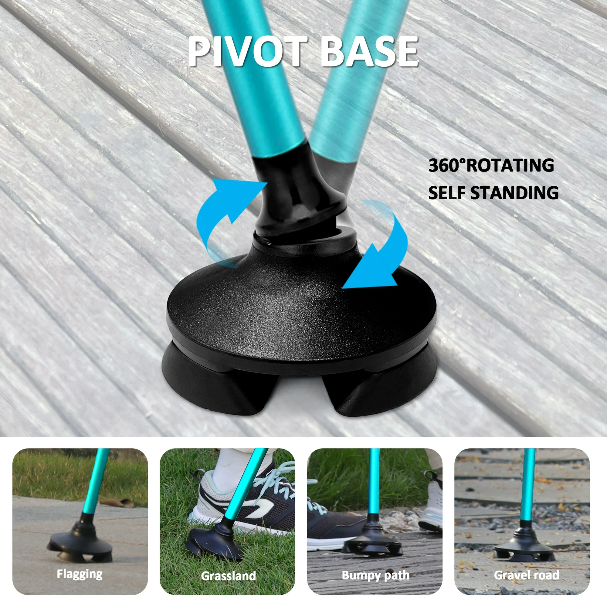 - 【360° Pivoting Quad Base for Superior Stability】The four non-slip rubber tips rotate freely, providing excellent traction on any surface. This innovative design minimizes the risk of slips and falls, offering confidence and flexibility during use.