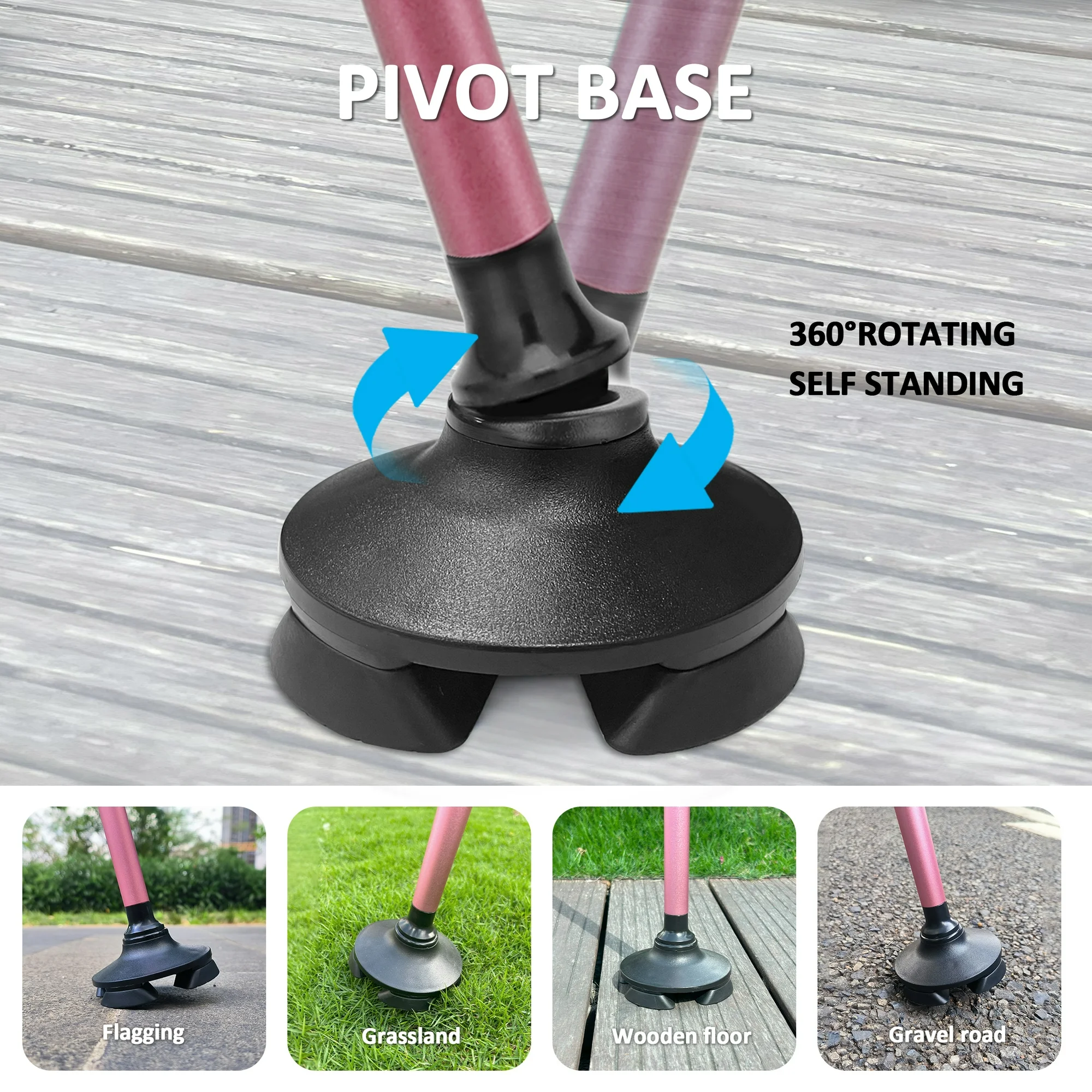 - 【360° Pivoting Quad Base for Superior Stability】The four non-slip rubber tips rotate freely, providing excellent traction on any surface. This innovative design minimizes the risk of slips and falls, offering confidence and flexibility during use.