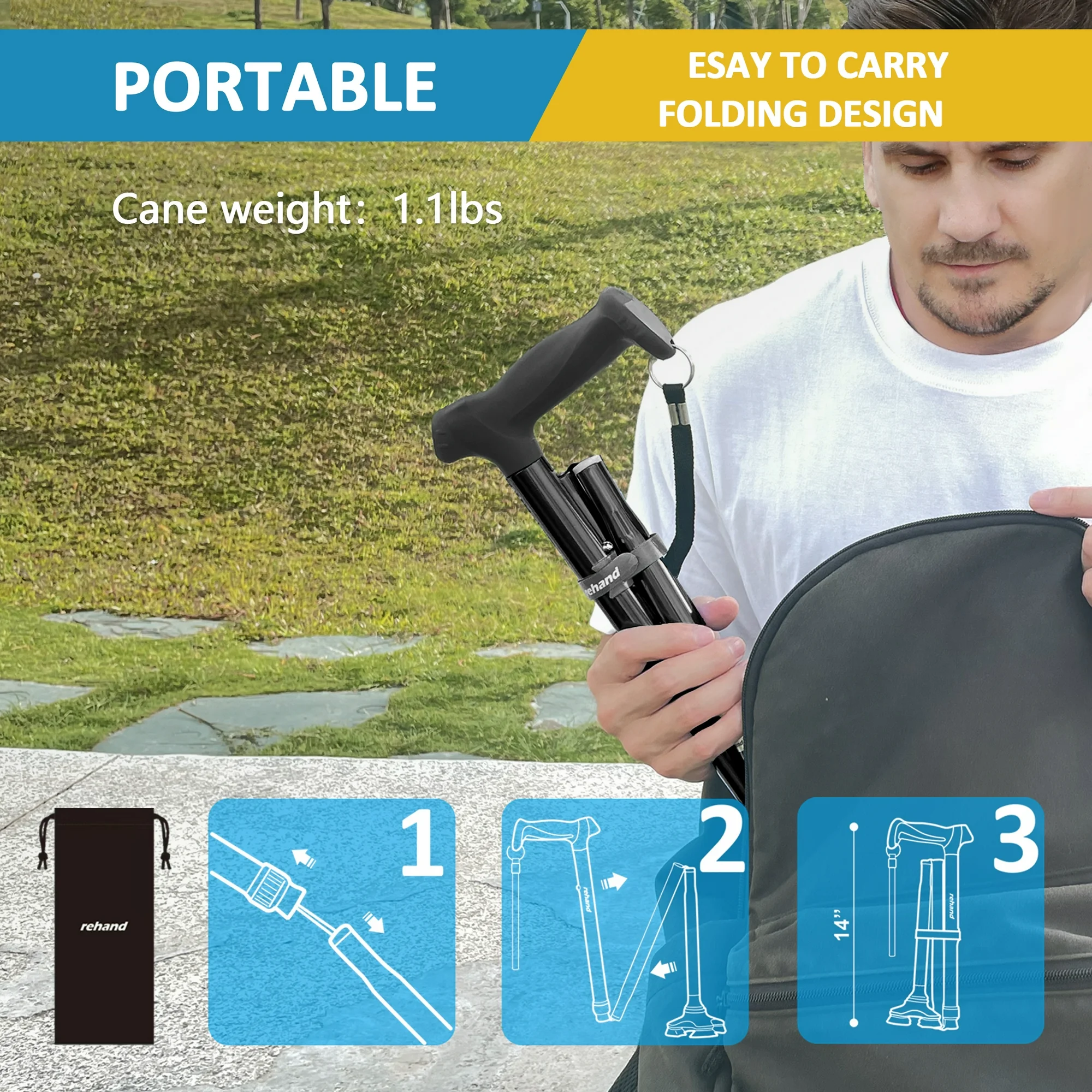 REHAND Adjustable Walking Cane,Lightweight Folding Walking Stick with for Men & Women,Seniors & Adults,Collapsible,Heavy Duty,Black