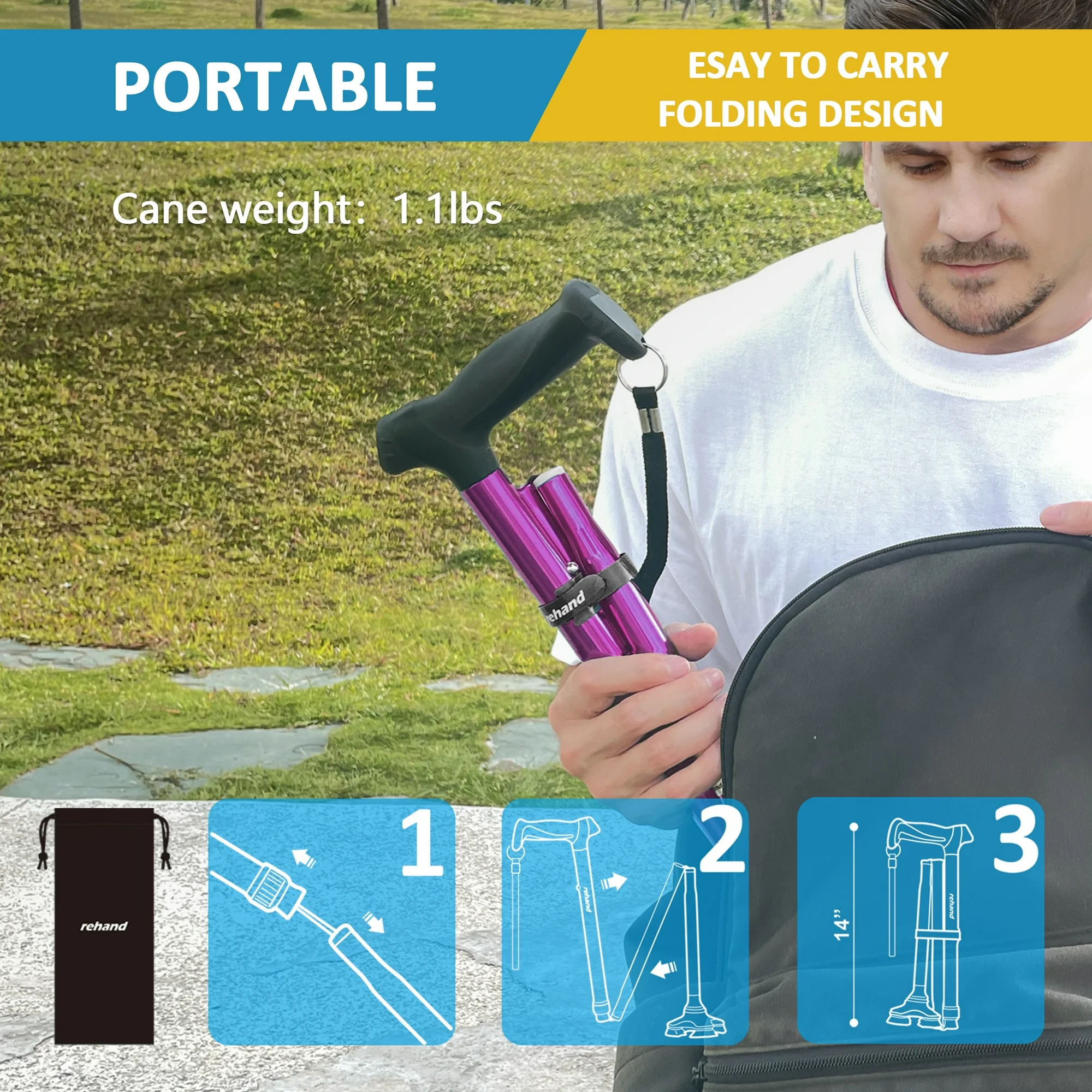 REHAND Adjustable Walking Cane,Lightweight Folding Walking Stick with for Men & Women,Seniors & Adults,Collapsible,Heavy Duty,Purple