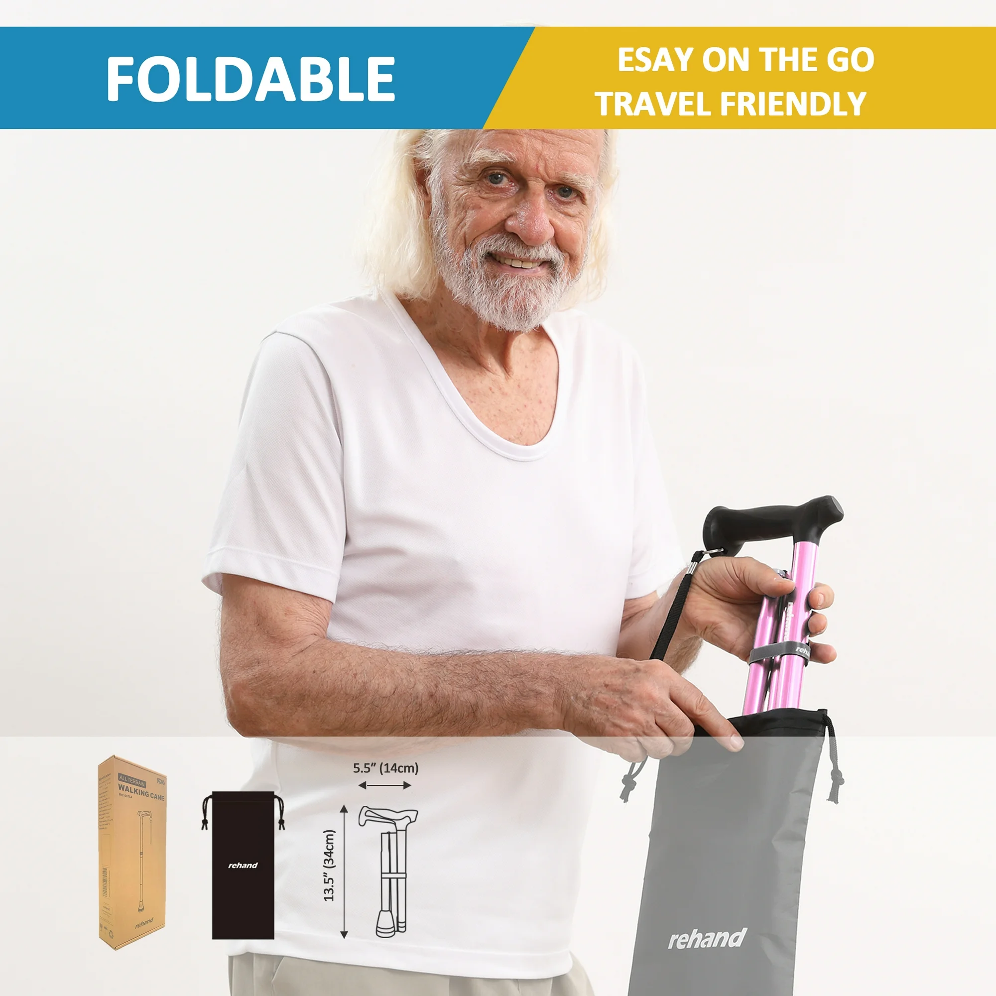 REHAND Foldable Walking Canes,Adjustable Height | Lightweight & Durable | Heavy Duty Walking Cane for Seniors Women & Men,Pink