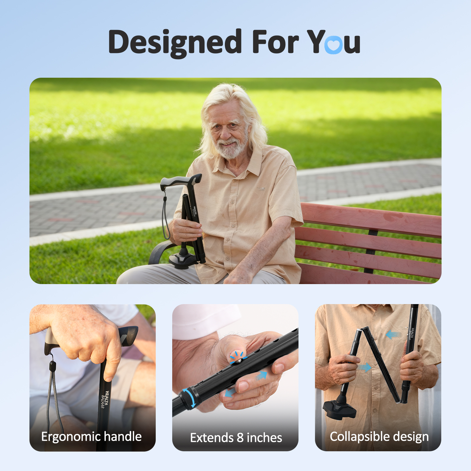 - Stable Trigrip Base: HealthBazaar pivot cane features an extra-wide 3-prong design with non-slip rubber foot pads, The trigrip base providing maximum balance, support, and reliable traction on any surface