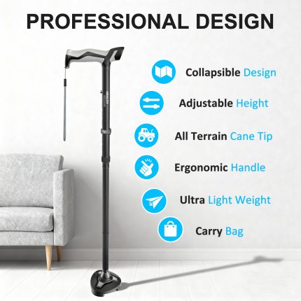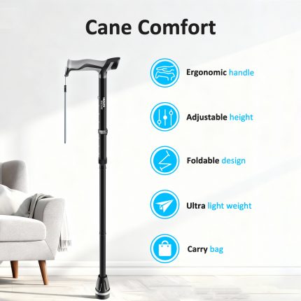 Walking Cane for Men & Women, Foldable Cane with Shock Absorption – Adjustable, Lightweight Collapsible Walking Stick for Seniors & Adults, Comfort Grip Handle, Heavy Duty All Terrain Tip